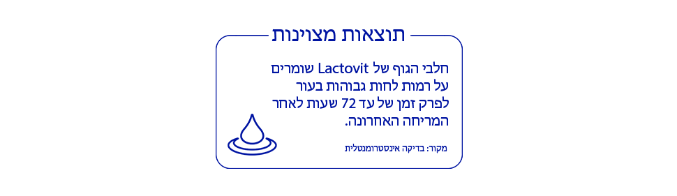 'מחפשים מוצר שיעניק לעור לחות? חלב הגוף של Lactovit, המותג מס' 1 בטיפוח העור באמצעות תכונות החלב, הוא הפתרון המושלם. הנוסחאות של חלבי הגוף שלנו מחזקות ומזינות את העור באופן אינטנסיבי, והמרקם הקליל שלהם נוח לשימוש והופך את שגרת הטיפוח היומית לחוויה מיוחדת.